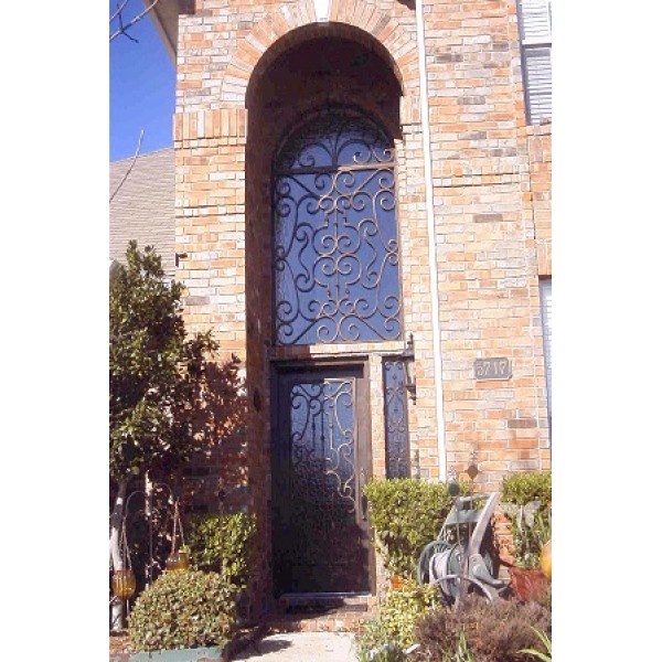 This high arch entryway was given a total makeover with the artistic iron door and upper windows. The value and appeal of this home was enhanced 100% immediatly after installation.